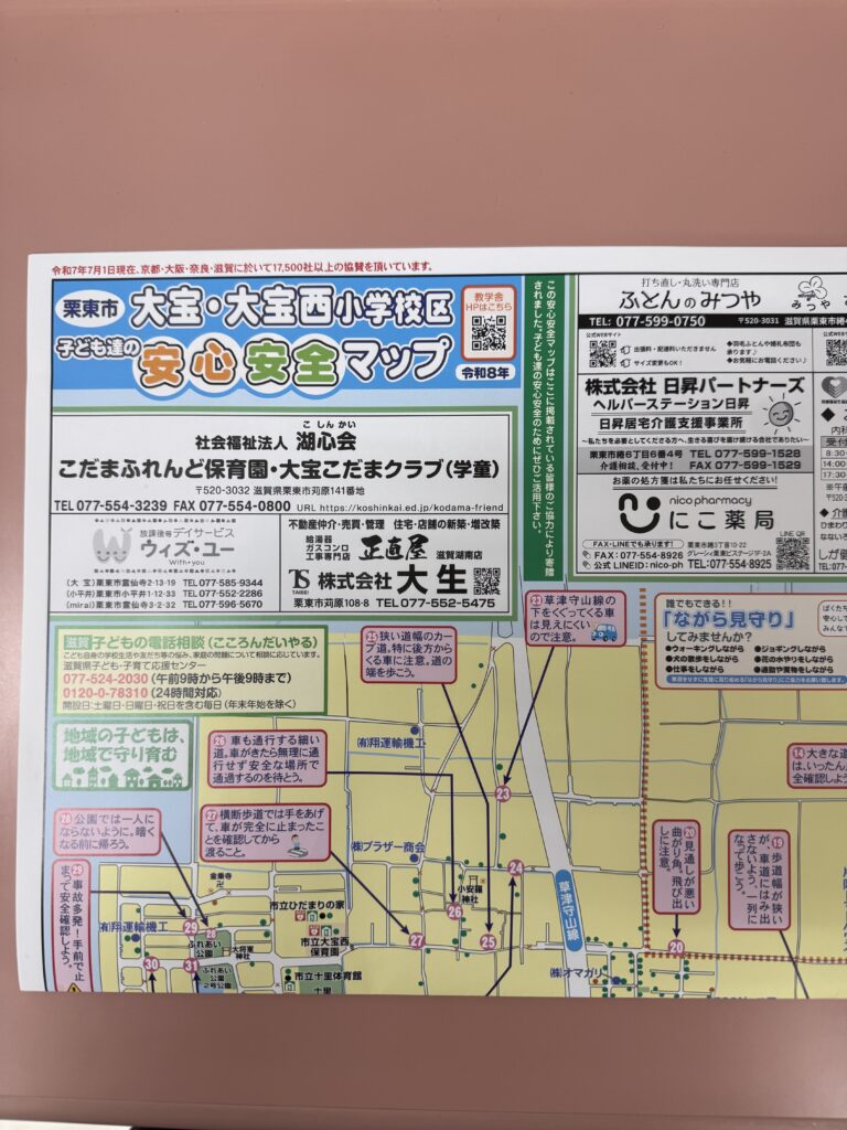 【栗東市大宝】地域の安全を見守る「にこ薬局」|子ども達の安心・安全マップに協賛しました!