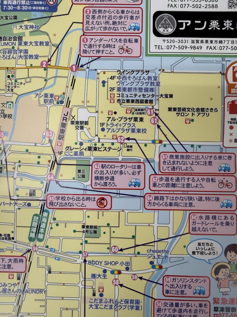 栗東駅周辺や、にこ薬局の近くのところでも注意したい場所が何箇所かあります!